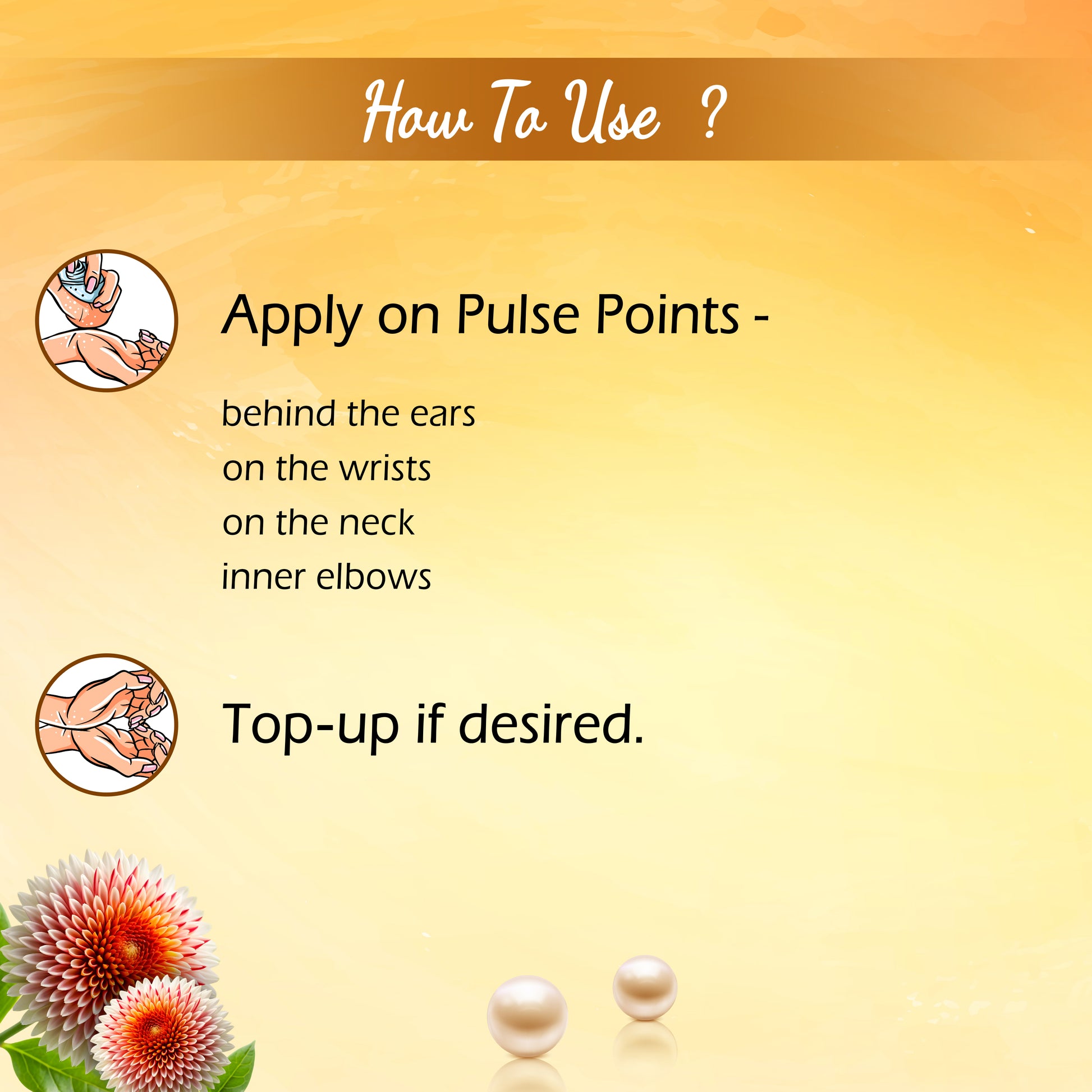 Apply a small amount to pulse points such as wrists, neck, or behind the ears. Use during meditation, prayer, or as a signature daily fragrance to evoke tranquility and grace.
