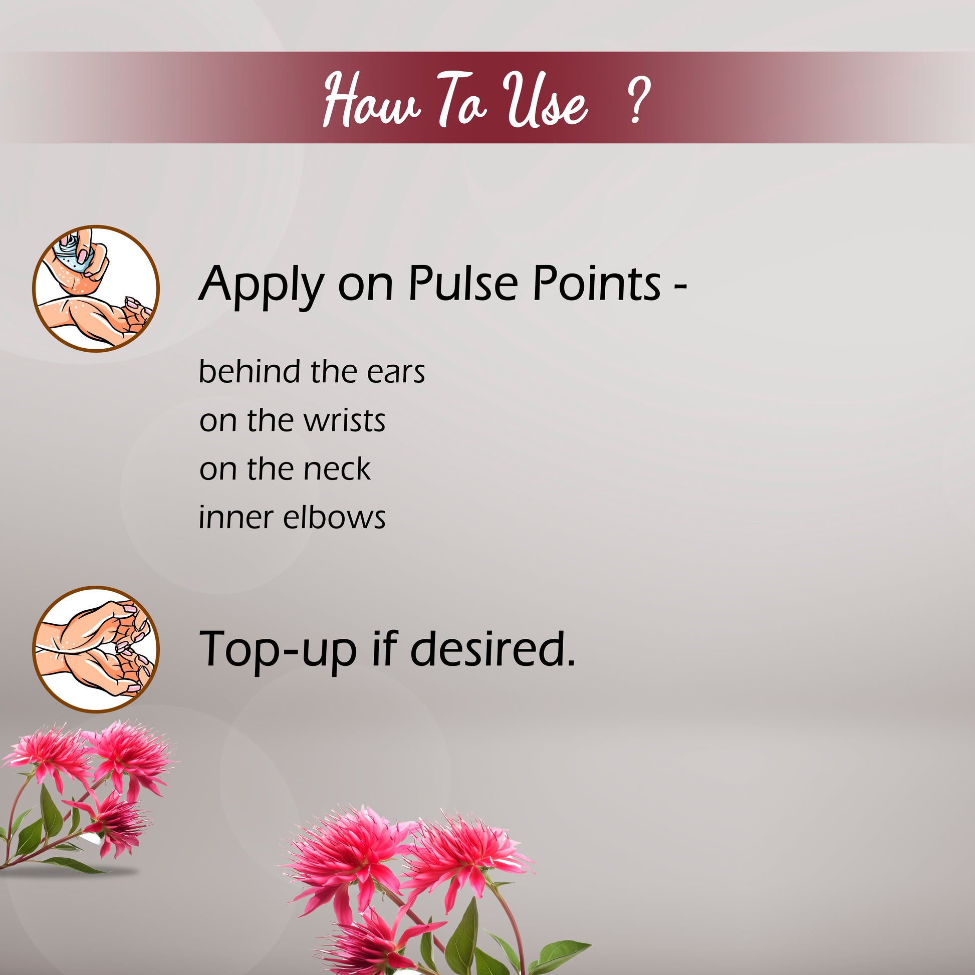 Apply a small amount to pulse points—wrists, behind ears, or neck—for a long-lasting, soul-stirring aroma. Ideal for special occasions, spiritual gatherings, or daily indulgence.