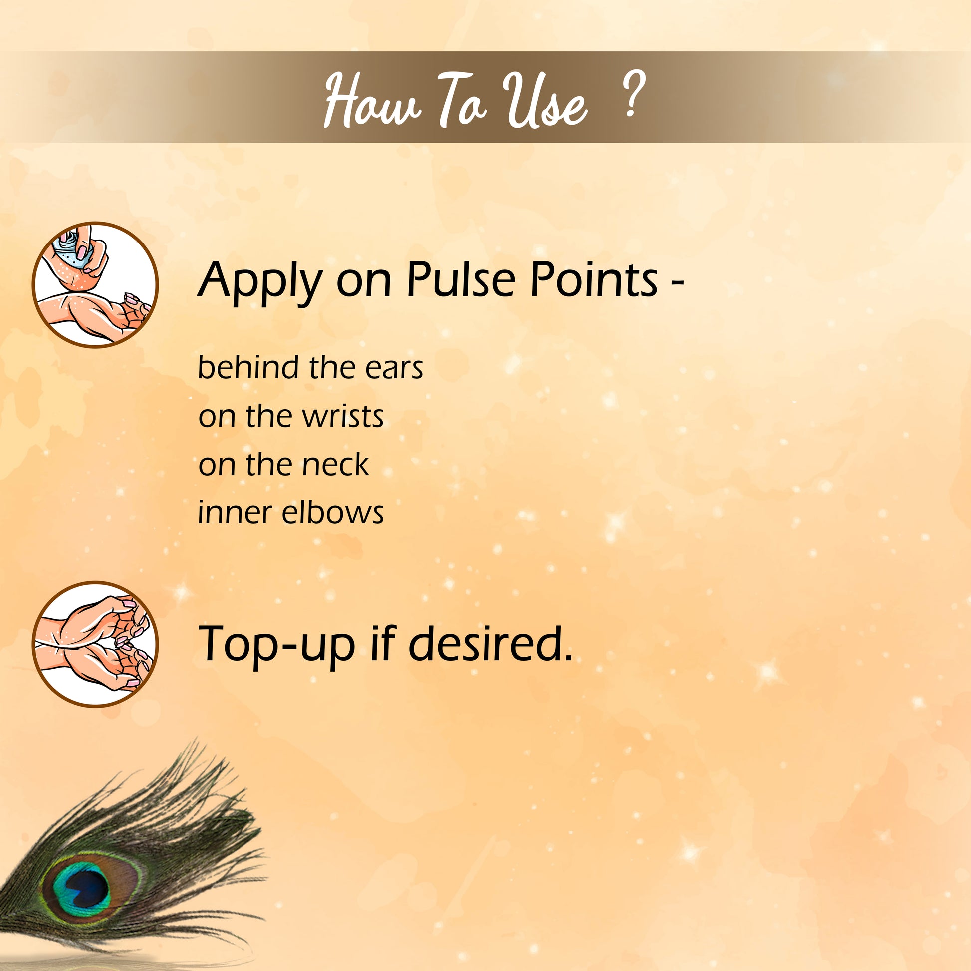 Apply to pulse points (wrists, neck, behind ears), or use in religious rituals, on altars, or with deity clothing. Suitable for all spiritual occasions and everyday use.
