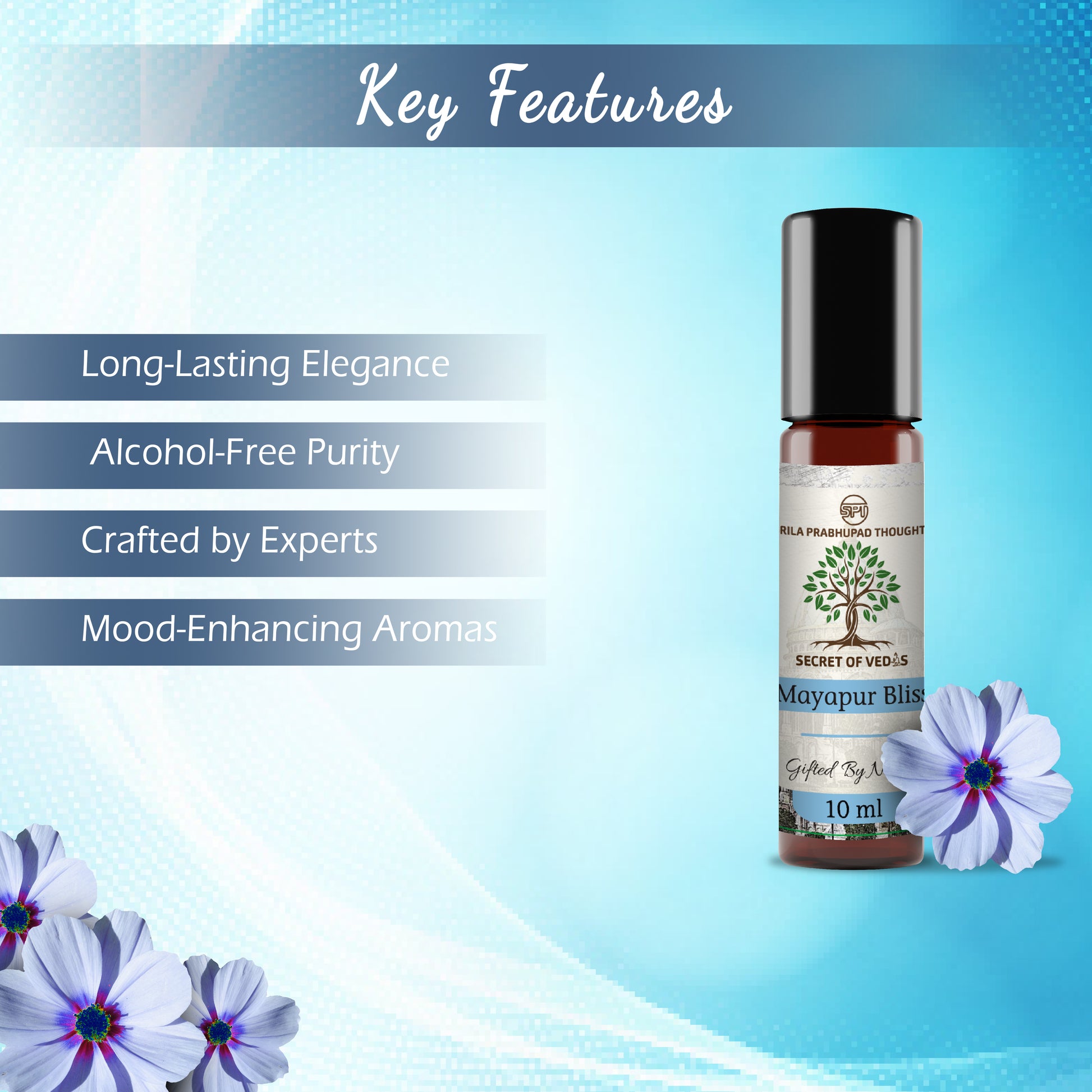 Mayapuri Bliss Attar is a luxurious, hand-crafted fragrance inspired by the spiritual energy and tranquil beauty of Mayapuri, the sacred city of divine devotion. This attar is a harmonious fusion of exotic florals, soft woods, and subtle earthy notes, creating a deeply soothing and meditative aroma.