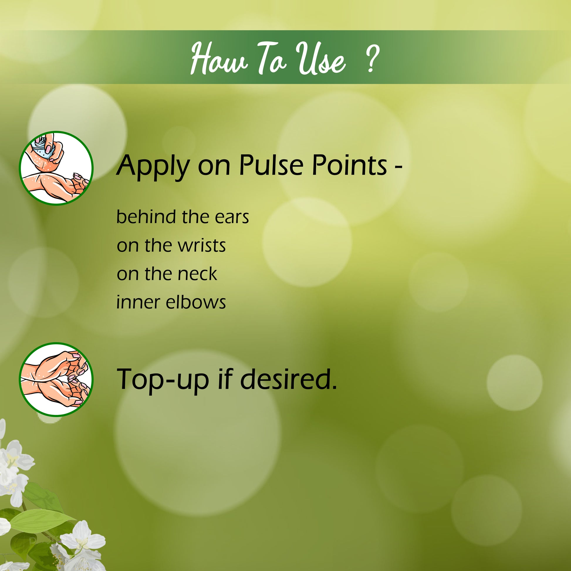 Apply a small amount to pulse points (wrists, neck, behind ears) or use during meditation and prayer for a calming, spiritual ambiance.