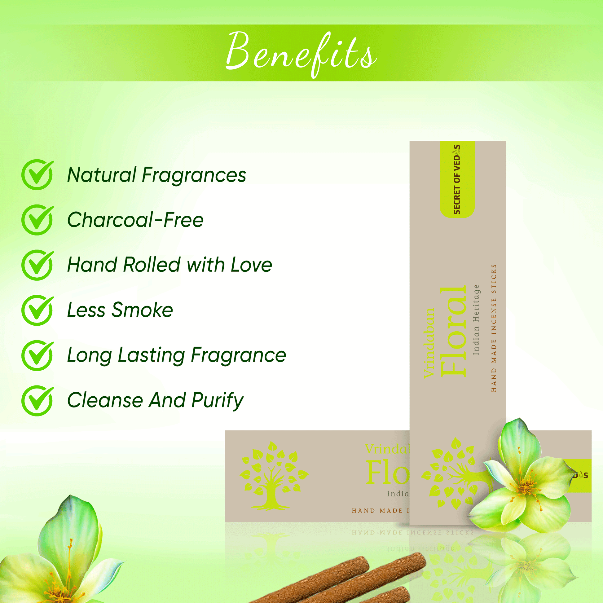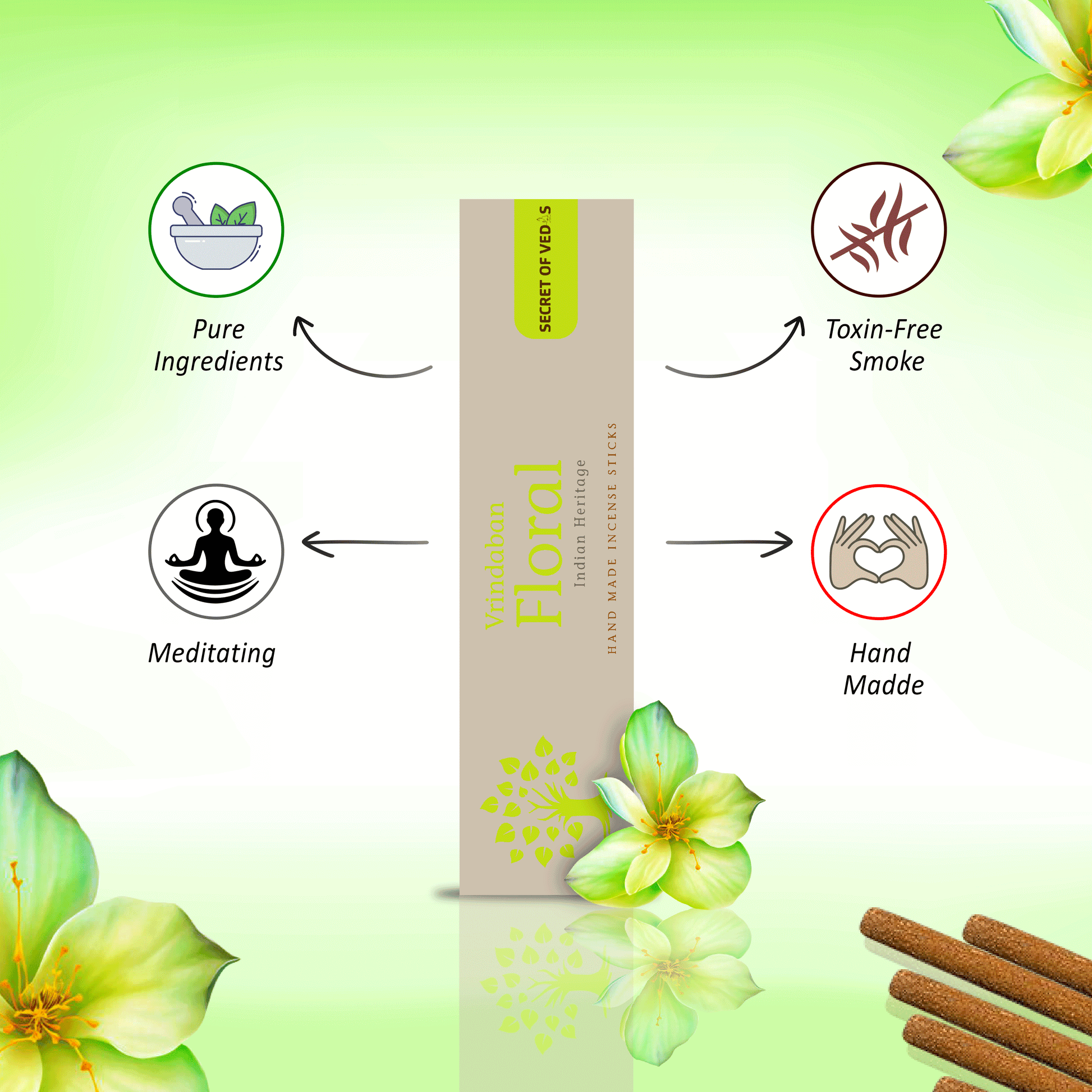 Vrindaban Floral Agarbatti offers a refined aromatic experience that captures the essence of traditional floral fragrances from Vrindaban. Crafted with high-quality natural ingredients, this agarbatti burns evenly, releasing a soothing and pure scent that enhances meditation, prayer, and daily rituals. Its delicate floral notes create a calming atmosphere, promoting relaxation and spiritual focus in any setting. Ideal for those seeking an authentic, serene ambiance rooted in devotional heritage.